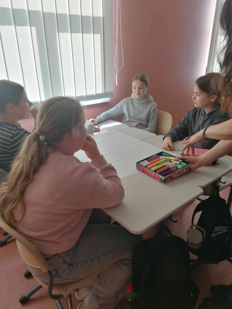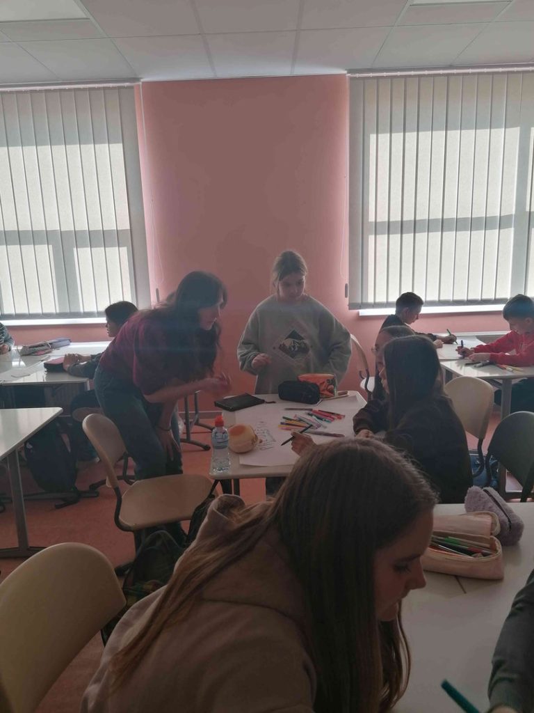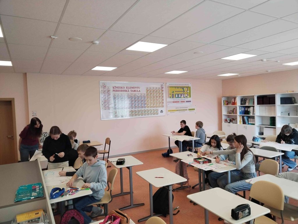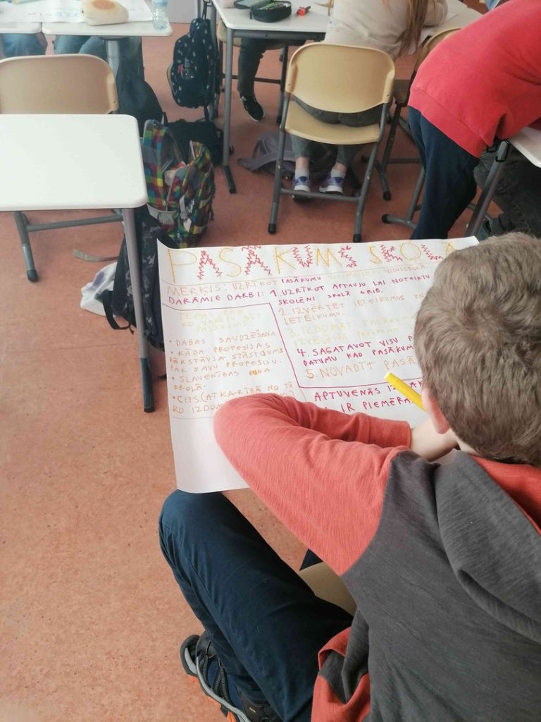 Praktiskajā nodarbībā skolēni sadalījās grupās un gatavoja plakātu par iespējamo labdarības akciju, ko realizēt savā kopienā. Skolēniem bija jāizlemj, kāds ir labdarības akcijas mērķis. Vienojās par pasākuma formātu un noskaidroja, kādi resursi, tam ir nepieciešami. Savus izveidotos plakātus skolēni prezentēs sociālo zinību un vēstures stundā.